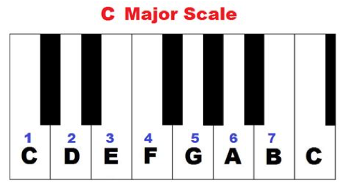 A scale is the term we use to describe the collection of notes found in a key. Conveniently for our remembrances, the keys in the C Major scale are all of the white notes on the keyboard! Kerching!